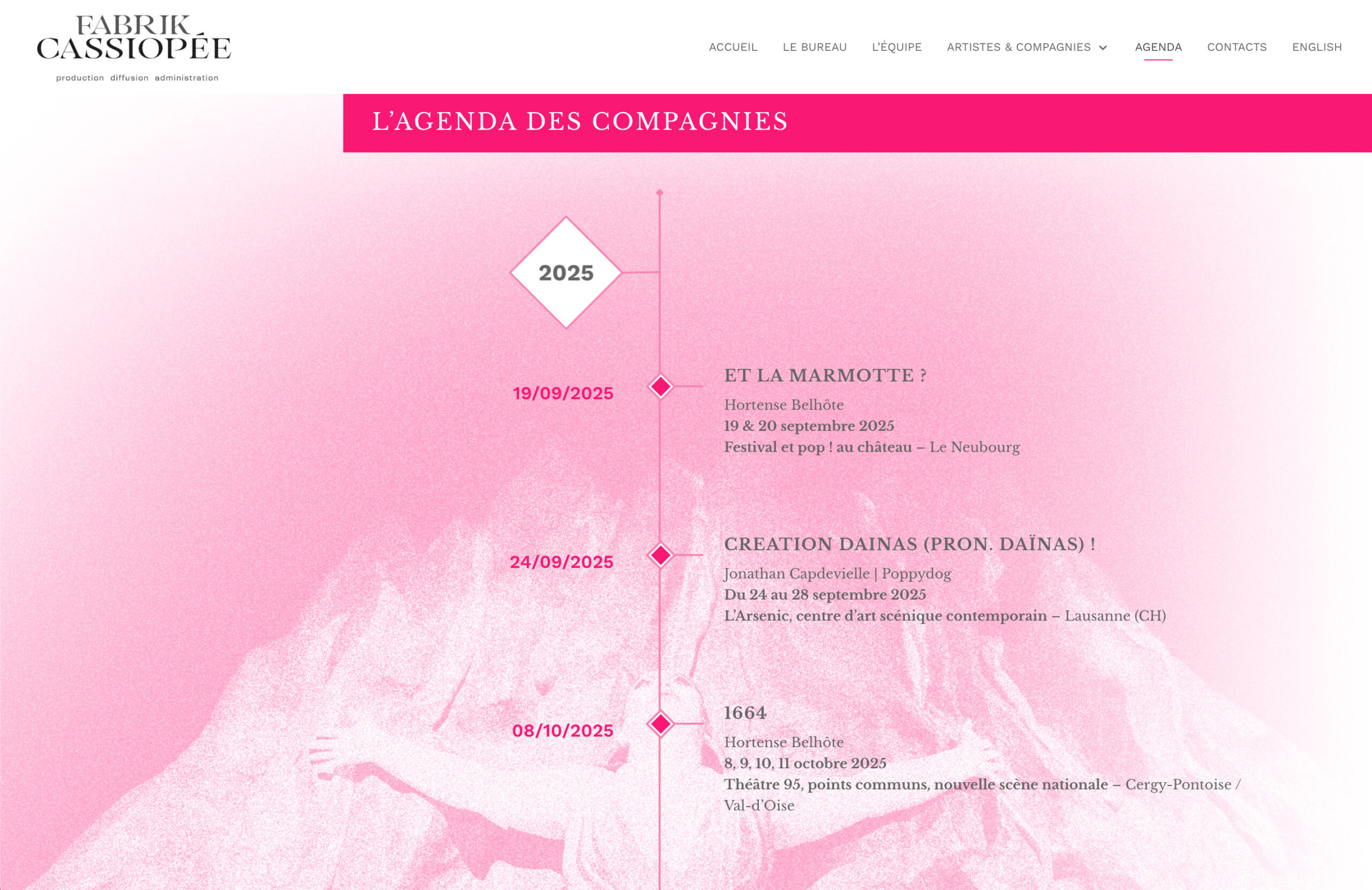 ← GRÉGOIRE GITTON | DESIGN GRAPHIQUE FABRIK CASSIOPÉE Bureau de production, diffusion et administration pour le spectacle vivant. Création de l’identité visuelle du bureau, du site internet et communication digitale. https://fabrikcassiopee.fr/