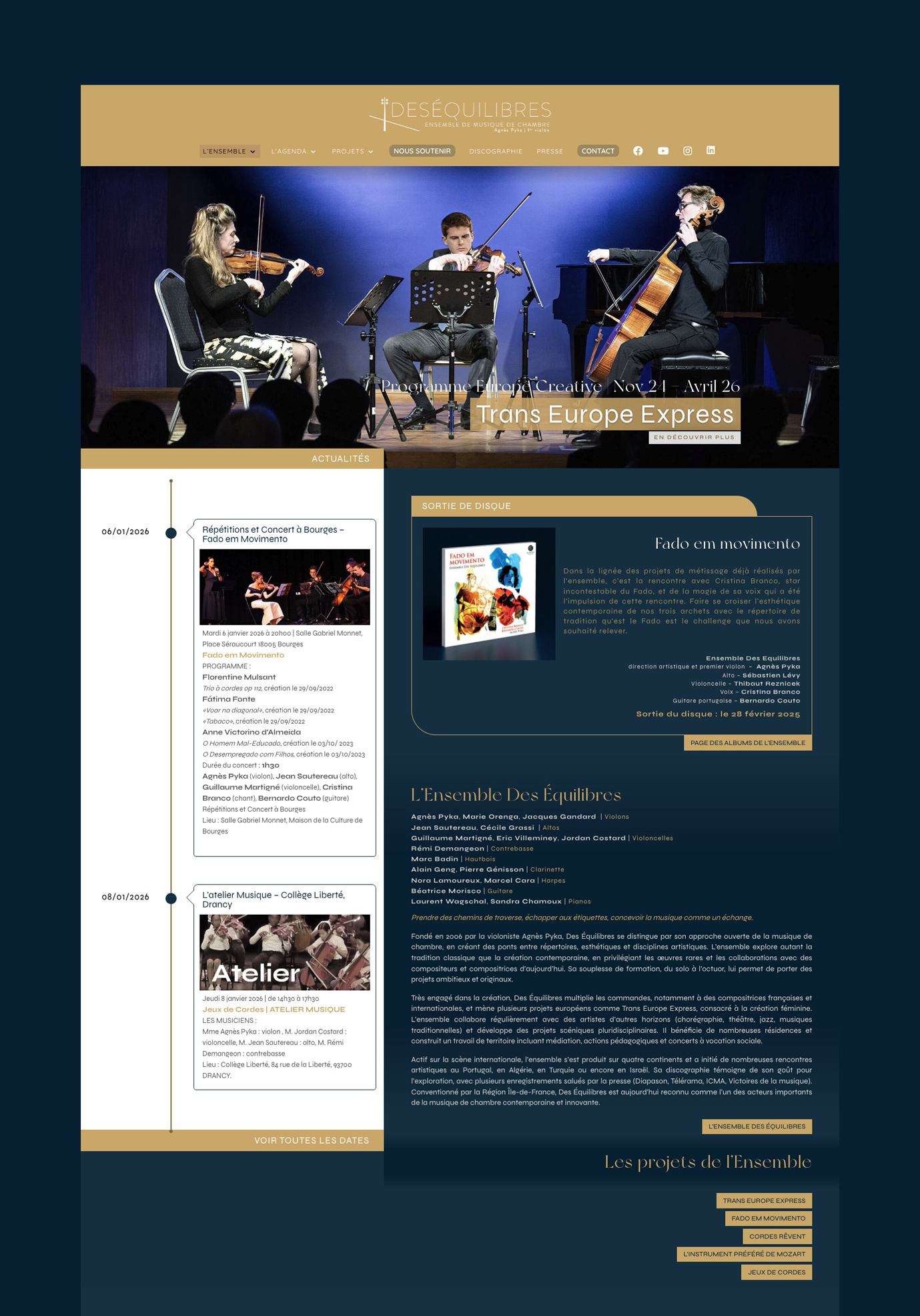 Du récital à l’octuor, l’Ensemble des Equilibres, dirigé par Agnès Pyka, premier violon, développe une actualité fournie sur de nombreux projets internationaux, des créations contemporaines, la mise en valeur des jeunes compositrices, les échanges et collaborations, ainsi que sur des ateliers, conférences, et projets pédagogiques.