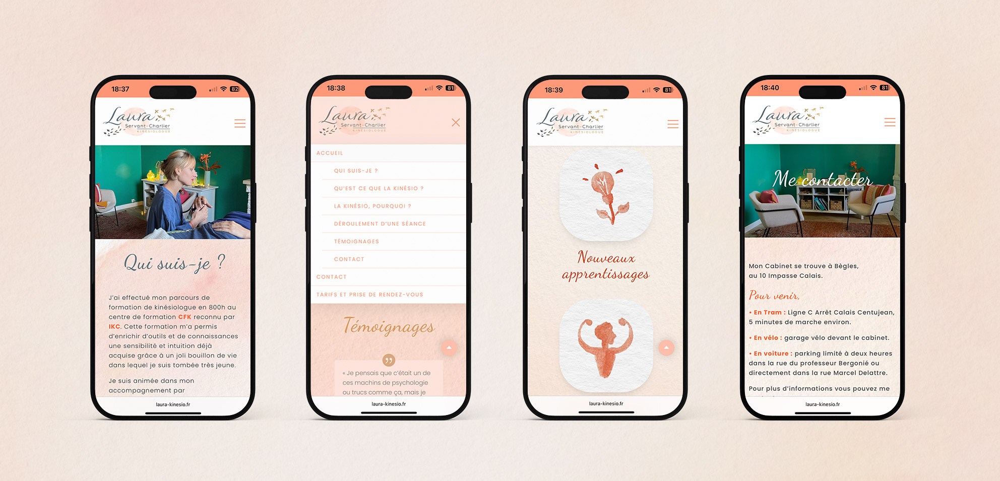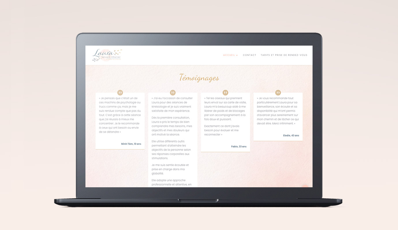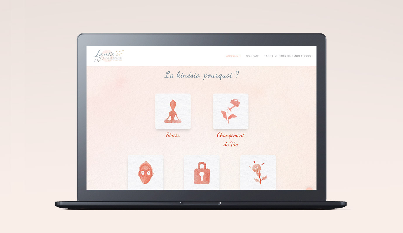 ← GRÉGOIRE GITTON | DESIGN GRAPHIQUE LAURA SERVANT-CHARLIER Laura Servant-Charlier est kinésiologue à Bègles, France. Création de l’identité et du site internet de la praticienne.