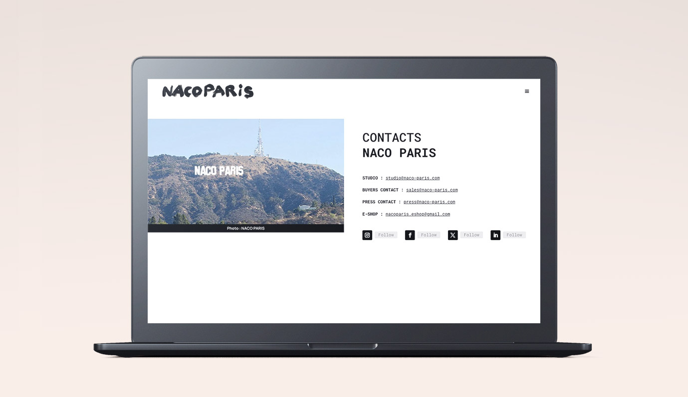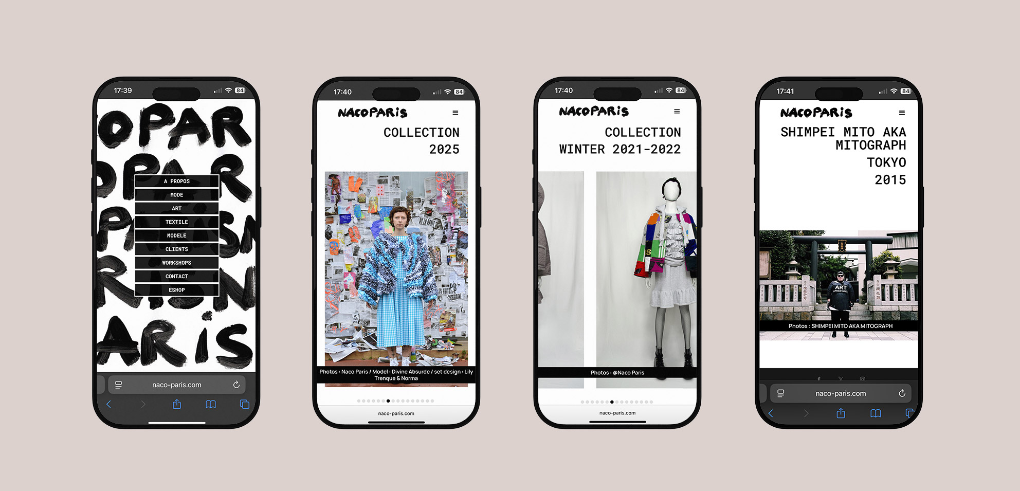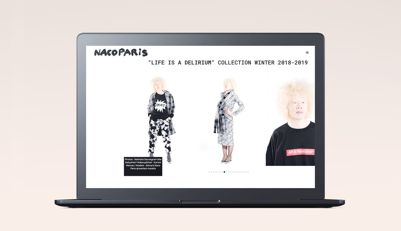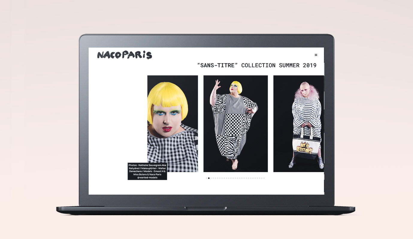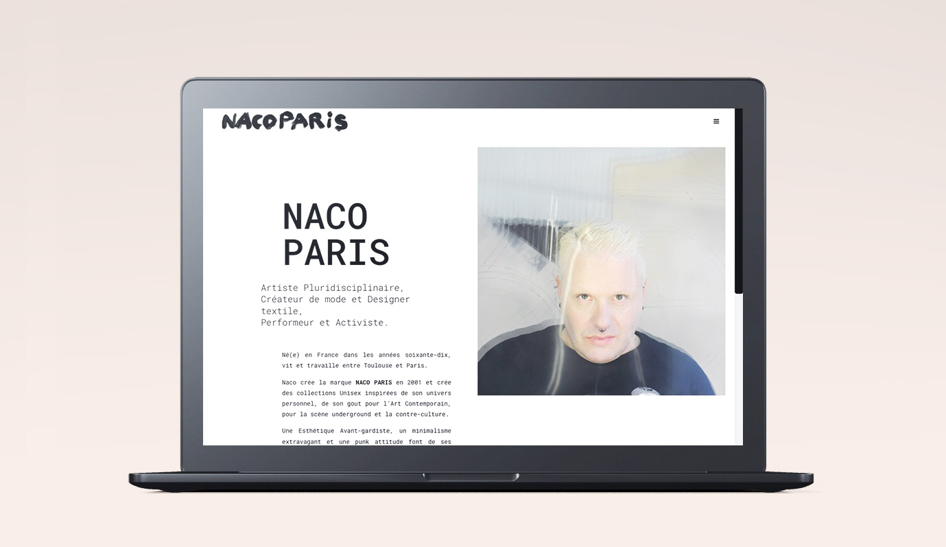 ← GRÉGOIRE GITTON | DESIGN GRAPHIQUE NACO PARIS Artiste pluridisciplinaire, créateur de mode et designer textile, performeur et activiste. Création du site internet de l’artiste.